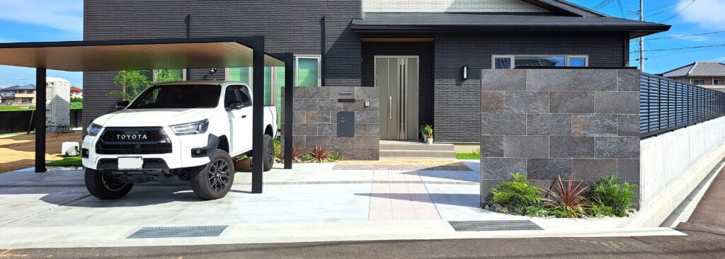 カーポート単体ではなく、外構全体のバランスを考慮した設計で、ワンランク上の外観に仕上げました。