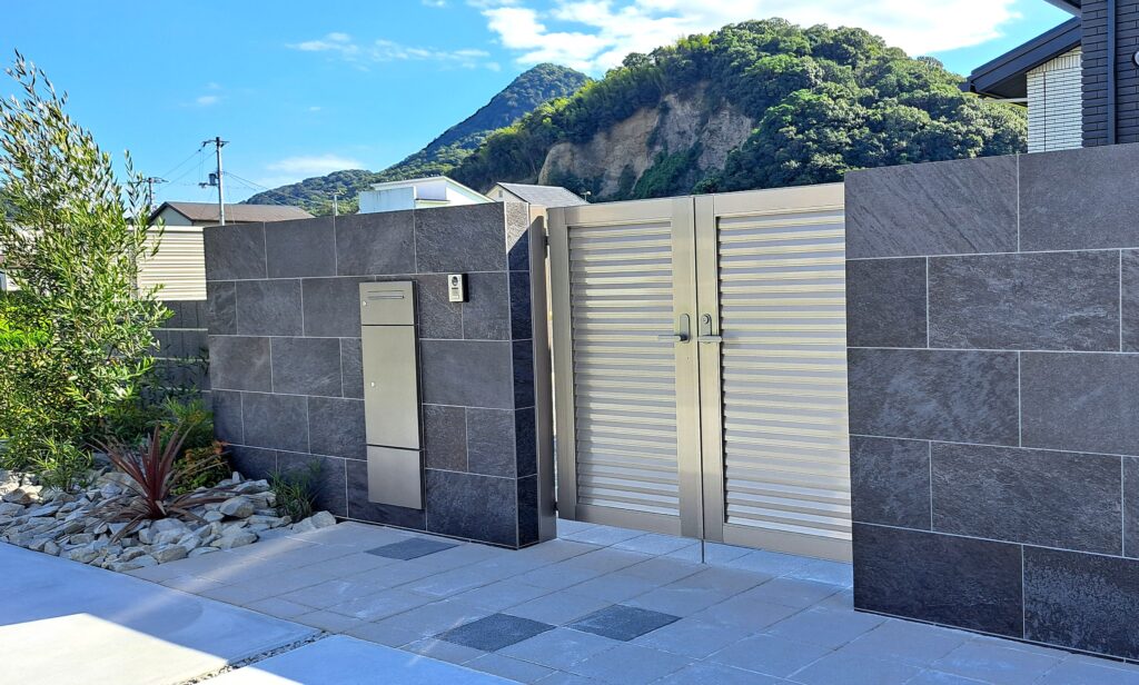 外構デザインと調和するシンプルな外観で、門まわりをすっきりと見せます。
