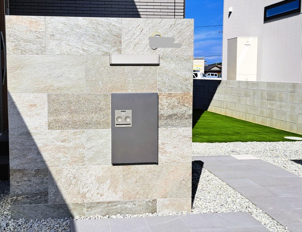 ポストや表札をすっきりとまとめ、機能性とデザイン性を両立しています。