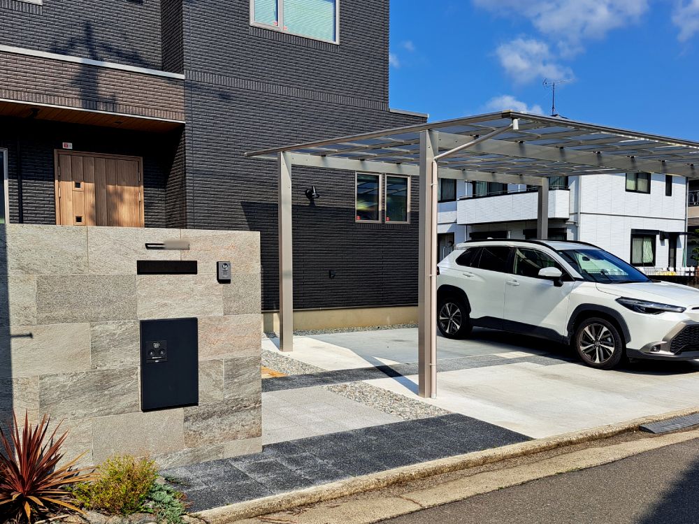 スタイリッシュなカーポートは採光性にも優れ、雨の日でも快適に乗り降りが可能です。