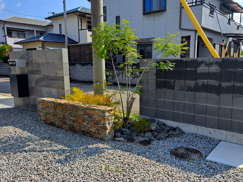 自然素材の風合いを活かし、落ち着きのある外構に仕上げました。